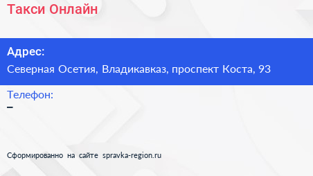 Такси Онлайн по адресу Северная Осетия, Владикавказ, проспект Коста, 93 в дальнейшем Организация, размещена в следующих категориях:
