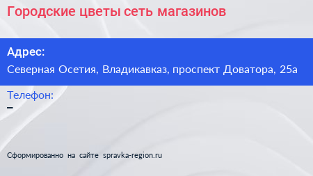 Городские цветы, сеть магазинов по адресу Северная Осетия, Владикавказ, проспект Доватора, 25а в дальнейшем Организация, размещена в следующих категориях:
