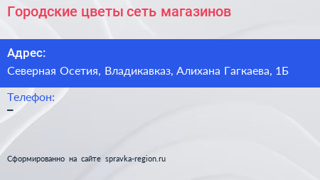 Городские цветы, сеть магазинов по адресу Северная Осетия, Владикавказ, Алихана Гагкаева, 1Б в дальнейшем Организация, размещена в следующих категориях:
