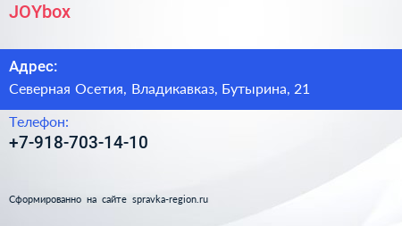 JOYbox по адресу Северная Осетия, Владикавказ, Бутырина, 21 в дальнейшем Организация, размещена в следующих категориях: