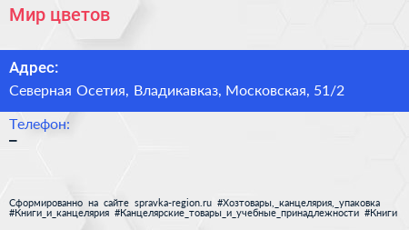 Мир цветов по адресу Северная Осетия, Владикавказ, Московская, 51/2 в дальнейшем Организация, размещена в следующих категориях: