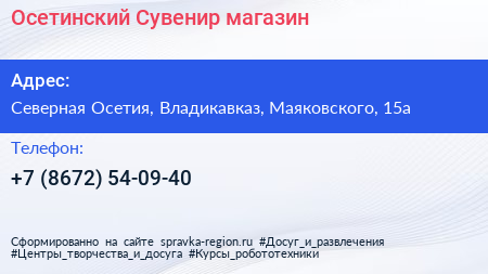 Осетинский Сувенир, магазин по адресу Северная Осетия, Владикавказ, Маяковского, 15а в дальнейшем Организация, размещена в следующих категориях:
