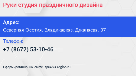 Руки, студия праздничного дизайна по адресу Северная Осетия, Владикавказ, Джанаева, 37 в дальнейшем Организация, размещена в следующих категориях: