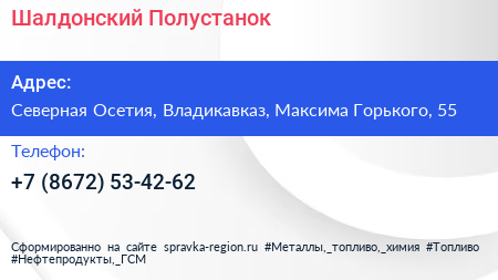Шалдонский Полустанок по адресу Северная Осетия, Владикавказ, Максима Горького, 55 в дальнейшем Организация, размещена в следующих категориях: