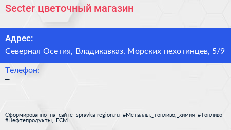 Secter, цветочный магазин по адресу Северная Осетия, Владикавказ, Морских пехотинцев, 5/9 в дальнейшем Организация, размещена в следующих категориях: