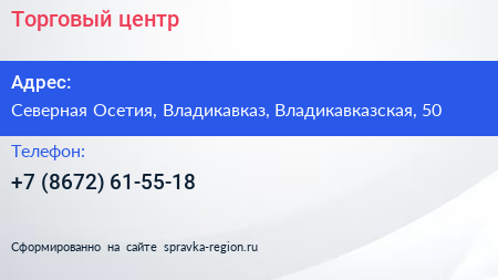 Торговый центр по адресу Северная Осетия, Владикавказ, Владикавказская, 50 в дальнейшем Организация, размещена в следующих категориях:
