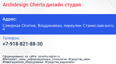Archdesign Cherta, дизайн-студия по адресу Северная Осетия, Владикавказ, переулок Станиславского, 4 в дальнейшем Организация, размещена в следующих категориях: