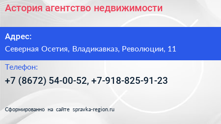 Астория, агентство недвижимости по адресу Северная Осетия, Владикавказ, Революции, 11 в дальнейшем Организация, размещена в следующих категориях: