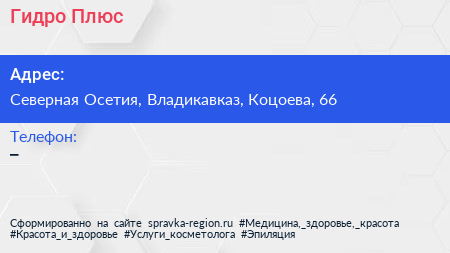 Гидро-Плюс по адресу Северная Осетия, Владикавказ, Коцоева, 66 в дальнейшем Организация, размещена в следующих категориях: