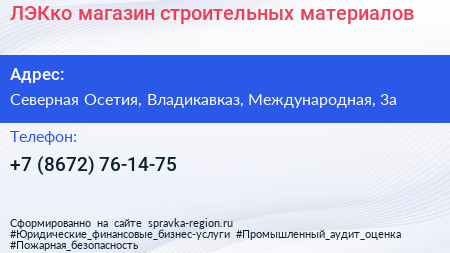 ЛЭКко, магазин строительных материалов по адресу Северная Осетия, Владикавказ, Международная, 3а в дальнейшем Организация, размещена в следующих категориях: