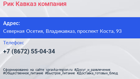 Рик-Кавказ, компания по адресу Северная Осетия, Владикавказ, проспект Коста, 93 в дальнейшем Организация, размещена в следующих категориях: