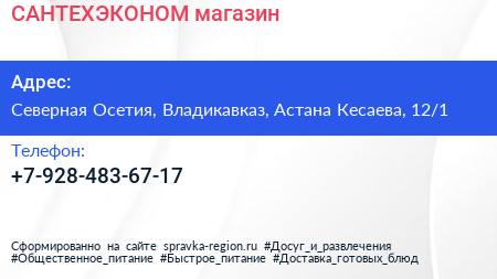 САНТЕХЭКОНОМ, магазин по адресу Северная Осетия, Владикавказ, Астана Кесаева, 12/1 в дальнейшем Организация, размещена в следующих категориях: