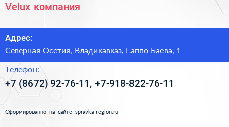 Velux, компания по адресу Северная Осетия, Владикавказ, Гаппо Баева, 1 в дальнейшем Организация, размещена в следующих категориях: