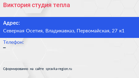 Виктория, студия тепла по адресу Северная Осетия, Владикавказ, Первомайская, 27 к1 в дальнейшем Организация, размещена в следующих категориях:
