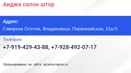 Аиджа, салон штор по адресу Северная Осетия, Владикавказ, Первомайская, 15а/5 в дальнейшем Организация, размещена в следующих категориях: