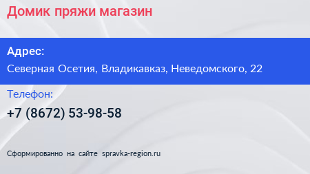 Домик пряжи, магазин по адресу Северная Осетия, Владикавказ, Неведомского, 22 в дальнейшем Организация, размещена в следующих категориях: