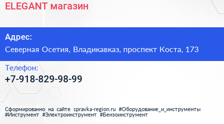 ELEGANT, магазин по адресу Северная Осетия, Владикавказ, проспект Коста, 173 в дальнейшем Организация, размещена в следующих категориях: