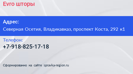 Evro-шторы по адресу Северная Осетия, Владикавказ, проспект Коста, 292 к1 в дальнейшем Организация, размещена в следующих категориях:
