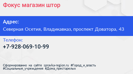 Фокус, магазин штор по адресу Северная Осетия, Владикавказ, проспект Доватора, 43 в дальнейшем Организация, размещена в следующих категориях: