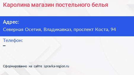 Каролина, магазин постельного белья по адресу Северная Осетия, Владикавказ, проспект Коста, 94 в дальнейшем Организация, размещена в следующих категориях: