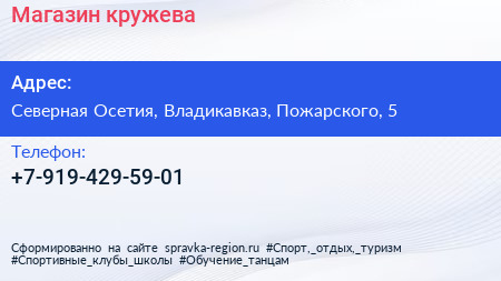 Магазин кружева по адресу Северная Осетия, Владикавказ, Пожарского, 5 в дальнейшем Организация, размещена в следующих категориях: