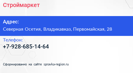 Строймаркет по адресу Северная Осетия, Владикавказ, Первомайская, 28 в дальнейшем Организация, размещена в следующих категориях:
