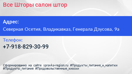 Все Шторы, салон штор по адресу Северная Осетия, Владикавказ, Генерала Дзусова, 9а в дальнейшем Организация, размещена в следующих категориях: