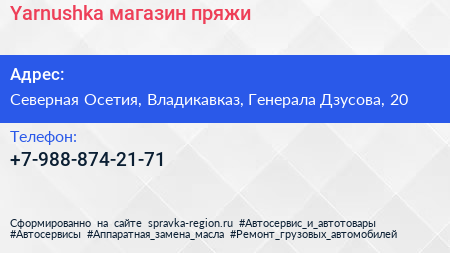 Yarnushka, магазин пряжи по адресу Северная Осетия, Владикавказ, Генерала Дзусова, 20 в дальнейшем Организация, размещена в следующих категориях: