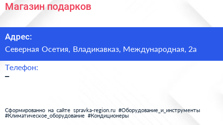 Магазин подарков по адресу Северная Осетия, Владикавказ, Международная, 2а в дальнейшем Организация, размещена в следующих категориях: