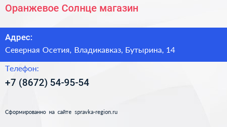 Оранжевое Солнце, магазин по адресу Северная Осетия, Владикавказ, Бутырина, 14 в дальнейшем Организация, размещена в следующих категориях: