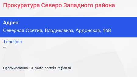 Прокуратура Северо-Западного района по адресу Северная Осетия, Владикавказ, Ардонская, 168 в дальнейшем Организация, размещена в следующих категориях: