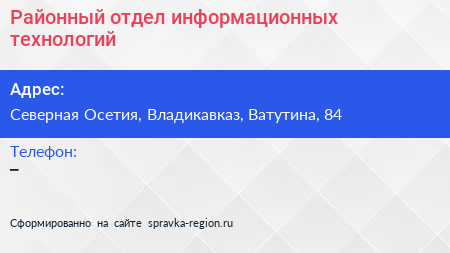 Районный отдел информационных технологий по адресу Северная Осетия, Владикавказ, Ватутина, 84 в дальнейшем Организация, размещена в следующих категориях: