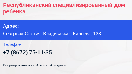 Республиканский специализированный дом ребенка по адресу Северная Осетия, Владикавказ, Калоева, 123 в дальнейшем Организация, размещена в следующих категориях: