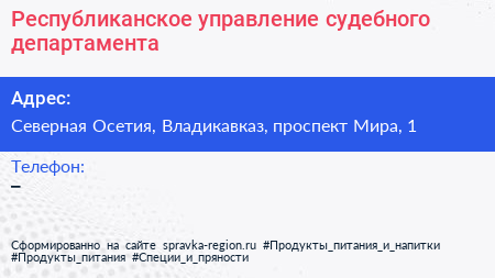 Республиканское управление судебного департамента по адресу Северная Осетия, Владикавказ, проспект Мира, 1 в дальнейшем Организация, размещена в следующих категориях: