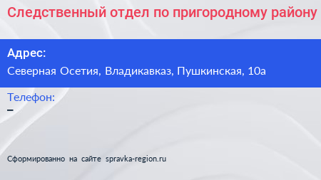 Следственный отдел по пригородному району по адресу Северная Осетия, Владикавказ, Пушкинская, 10а в дальнейшем Организация, размещена в следующих категориях: