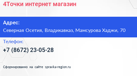 4Точки, интернет-магазин по адресу Северная Осетия, Владикавказ, Мамсурова Хаджи, 70 в дальнейшем Организация, размещена в следующих категориях:
