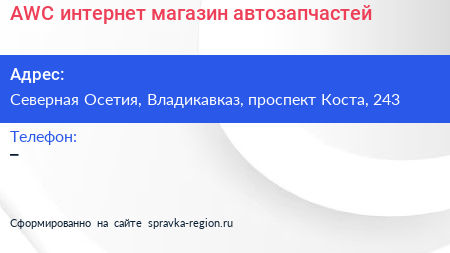 AWC, интернет-магазин автозапчастей по адресу Северная Осетия, Владикавказ, проспект Коста, 243 в дальнейшем Организация, размещена в следующих категориях:
