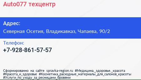 Auto077, техцентр по адресу Северная Осетия, Владикавказ, Чапаева, 90/2 в дальнейшем Организация, размещена в следующих категориях: