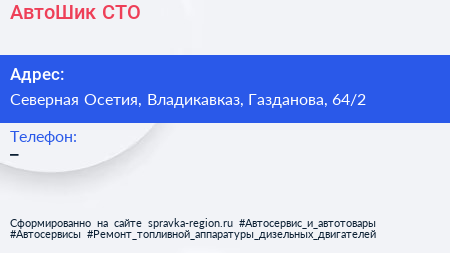 АвтоШик, СТО по адресу Северная Осетия, Владикавказ, Газданова, 64/2 в дальнейшем Организация, размещена в следующих категориях: