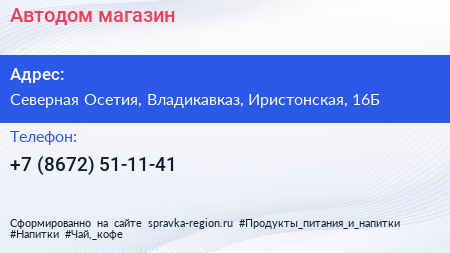 Автодом, магазин по адресу Северная Осетия, Владикавказ, Иристонская, 16Б в дальнейшем Организация, размещена в следующих категориях: