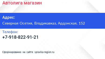 Автолига, магазин по адресу Северная Осетия, Владикавказ, Ардонская, 152 в дальнейшем Организация, размещена в следующих категориях: