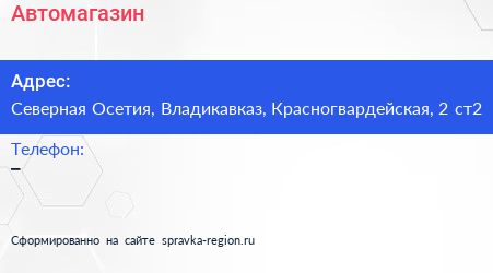 Автомагазин по адресу Северная Осетия, Владикавказ, Красногвардейская, 2 ст2 в дальнейшем Организация, размещена в следующих категориях: