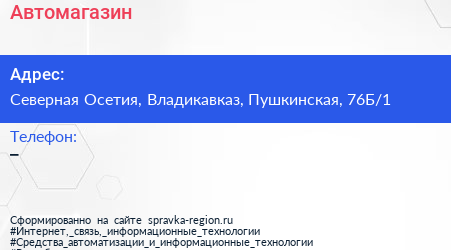 Автомагазин по адресу Северная Осетия, Владикавказ, Пушкинская, 76Б/1 в дальнейшем Организация, размещена в следующих категориях: