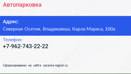 Автопарковка по адресу Северная Осетия, Владикавказ, Карла Маркса, 100а в дальнейшем Организация, размещена в следующих категориях: