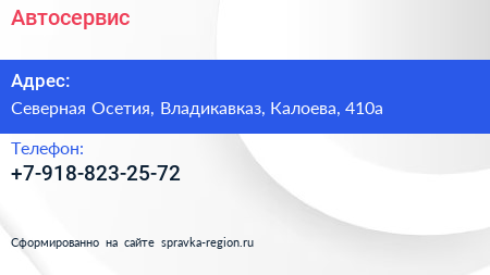 Автосервис по адресу Северная Осетия, Владикавказ, Калоева, 410а в дальнейшем Организация, размещена в следующих категориях: