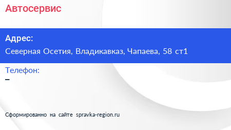 Автосервис по адресу Северная Осетия, Владикавказ, Чапаева, 58 ст1 в дальнейшем Организация, размещена в следующих категориях: