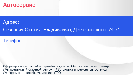 Автосервис по адресу Северная Осетия, Владикавказ, Дзержинского, 74 к1 в дальнейшем Организация, размещена в следующих категориях:
