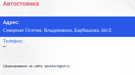 Адрес: Северная Осетия, Владикавказ, Владивостокская, 3Б