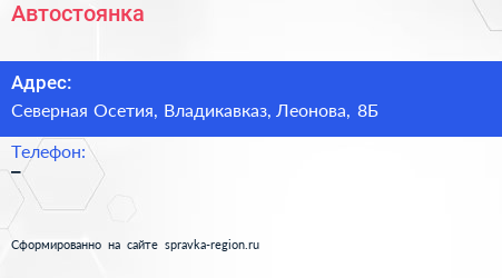 Автостоянка по адресу Северная Осетия, Владикавказ, Леонова, 8Б в дальнейшем Организация, размещена в следующих категориях: