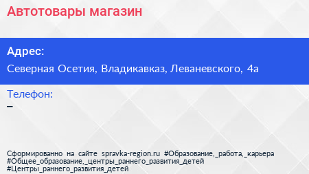 Автотовары, магазин по адресу Северная Осетия, Владикавказ, Леваневского, 4а в дальнейшем Организация, размещена в следующих категориях: